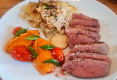 Nous cuisinons chez vous une cuisine française généreuse et entièrement faite maison, avec des produits frais et de saison.